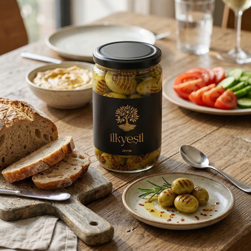 İlkyeşil Izgara Zeytin, Akhisar’ın ikliminde özenle yetiştirilen Kalamata cinsi iri zeytinlerden hazırlanır. Badem formundaki iri taneleri, parlak görünümü ve yoğun dokusuyla sofralarda öne çıkar.